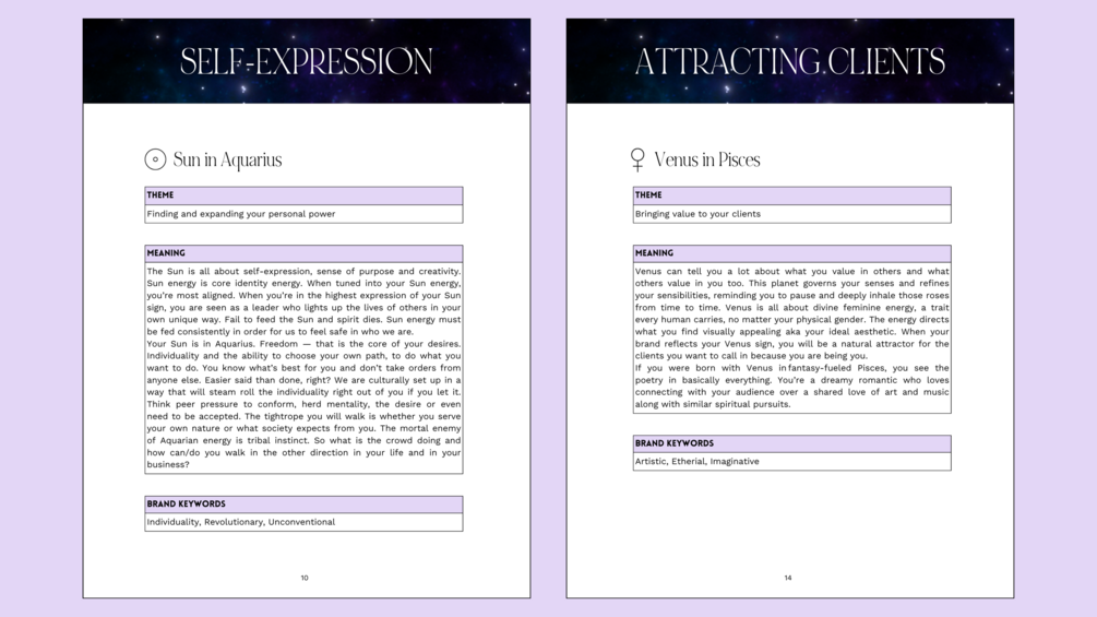 ✨Theme, Meaning, and Brand Keywords for your brand-specific Astrology placements that help you self-express, attract clients, and build a legacy tied to your empire