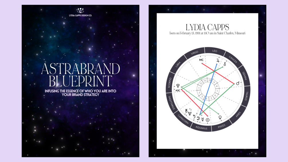 ✨3 AstraBrand® Mock-ups with mood boards, color swatches, and font pairings based on your unique Astrological Birth Chart